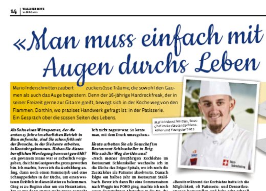 Als bester Nachwuchskoch, Koch Nationalmannschaft und nach medialen Lobgesängen, zieht es Mario Inderschmitten nicht in die weite Welt hinaus, sondern ins Binntal hinein.