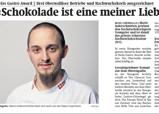 Kochnationalmannschaft, Youngster of the Year 2012, Rhoneköche: Wie berichtet die Medienlandschaft über die neusten Gastgeber des Binntals?
